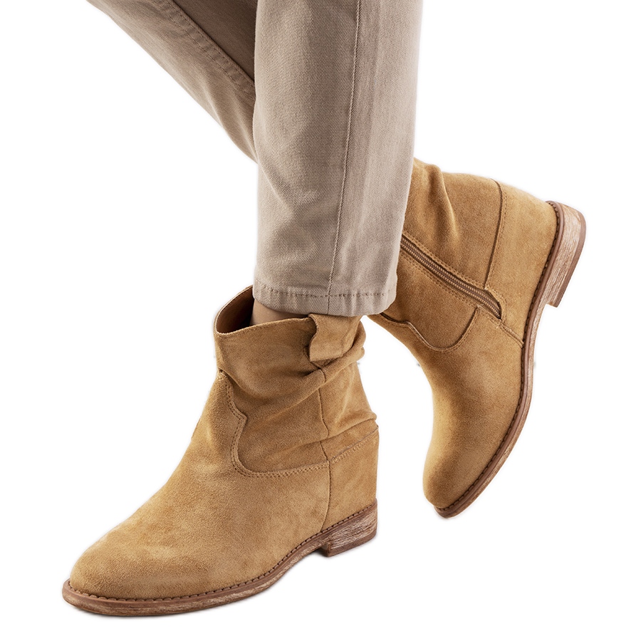 Dunkle beige Stiefel auf dem Innenkeil Hunjet A3703-32-Eleganz und Bequemlichkeit für eine vorübergehende Saison.