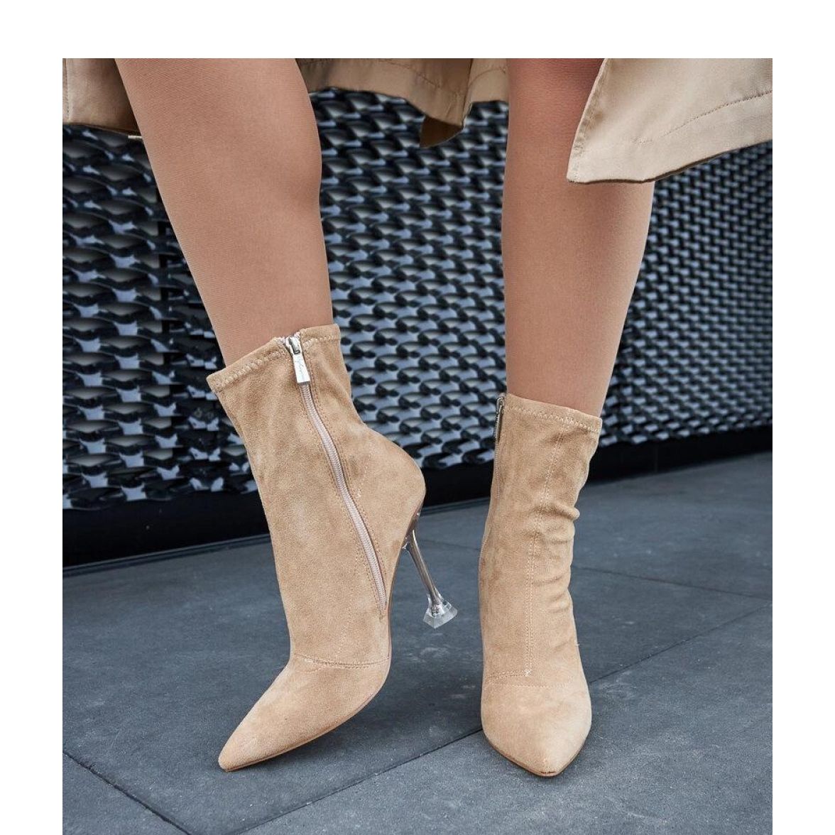 Inna marka Dunkelbeige Stiefeletten mit hohem Absatz