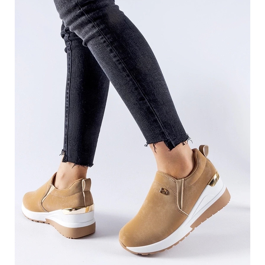 Dunkle beige Sneakers auf dem Vitale -Keil der Marke D/GMR sind eine gute Wahl für Frauen, die einen modischen Look mit dem Komfort des Tragens kombinieren möchten. Ihr modernes Design macht Aufmerksamkeit und interessante Details, wie eine dicke dekorative Kette, machen diese Schuhe zu einem Hit dieser Saison.