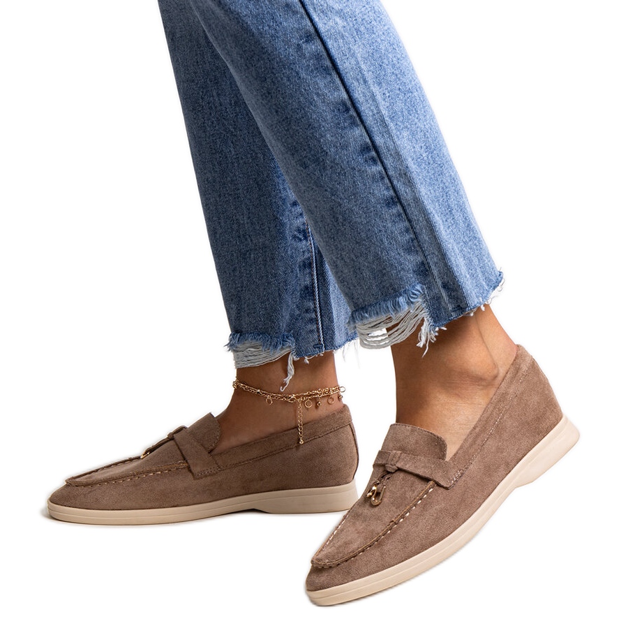 Inna marka Dunkelbraune Mokassins mit Metallanhänger von Fiorano beige