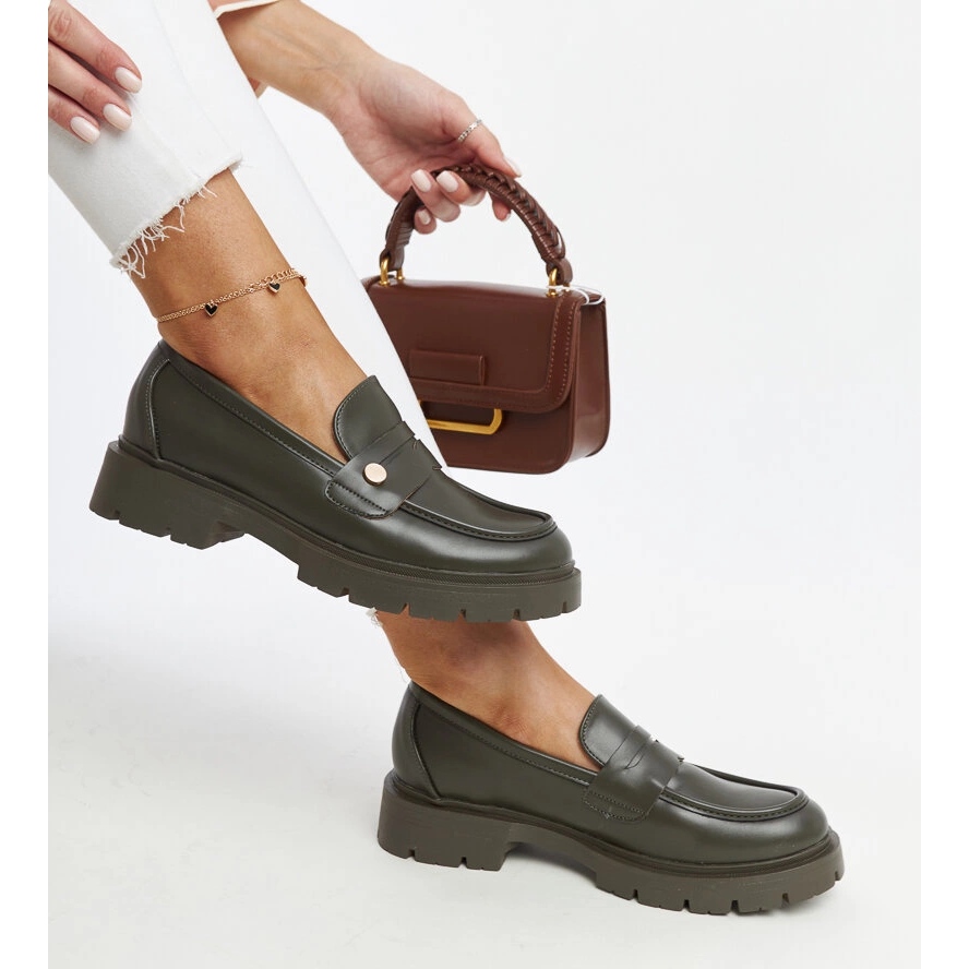 Dunkelgrüne Eco -Ledermocasins entwickelt für Frauen, die sowohl Mode als auch Komfort schätzen, sind Schuhe, die sicherlich die Herzen vieler Liebhaber von stilvollem, alltäglichem Look bekommen. Warten Sie nicht und vervollständigen Sie Ihre Sammlung mit diesem einzigartigen Modell!