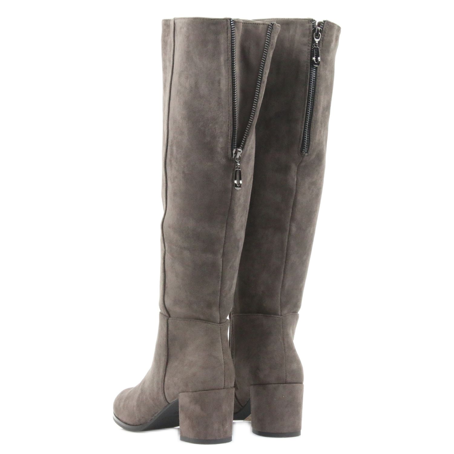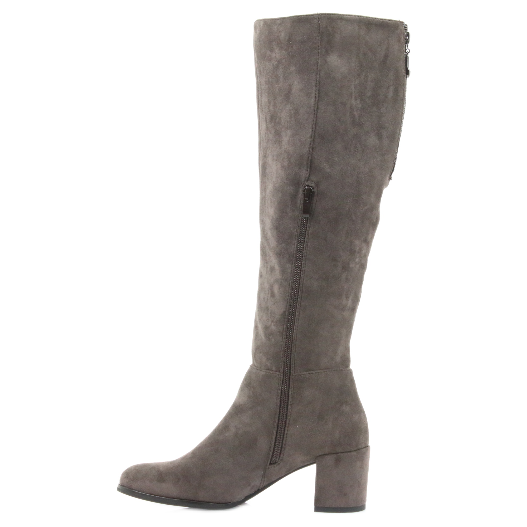 Der hohe Schaft, der bis zum Knie reicht, und der klassische Schnitt machen diese Schuhe perfekt für eine Vielzahl von Stilen, von formell bis leger. Der niedrige Absatz von 6 cm Höhe sorgt für Stabilität und Komfort beim stundenlangen Tragen. Ein zusätzlicher Vorteil ist der praktische Reißverschluss im oberen Teil des Schafts, der ein einfaches An- und Ausziehen der Schuhe ermöglicht und zudem deren Weite vergrößert.