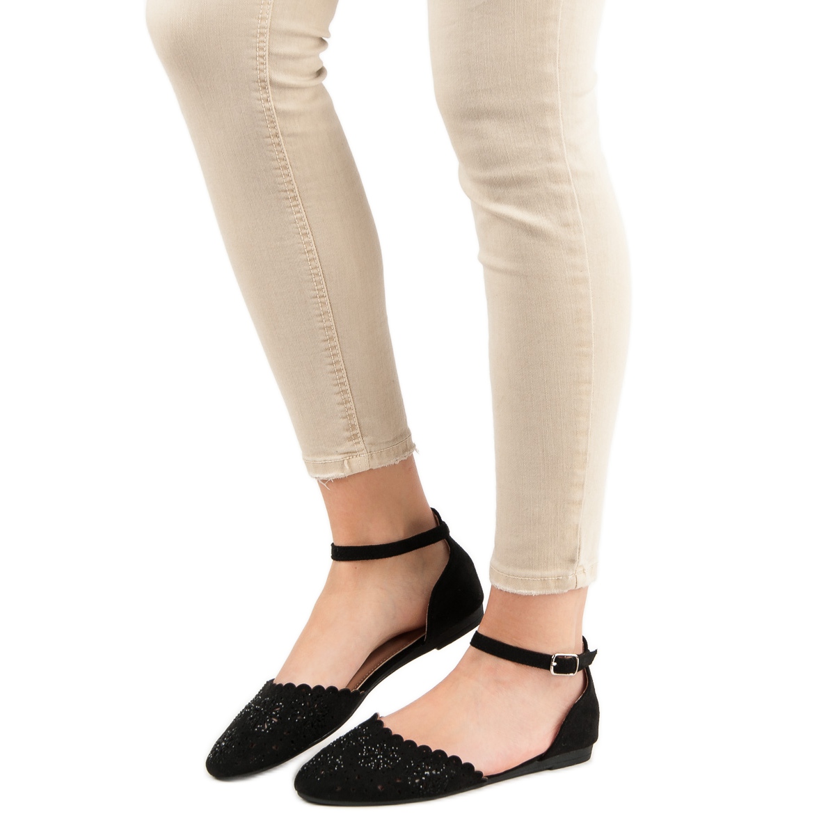 Laura Mode Laura Mode Durchbrochene Ballerinas mit Kristallen schwarz