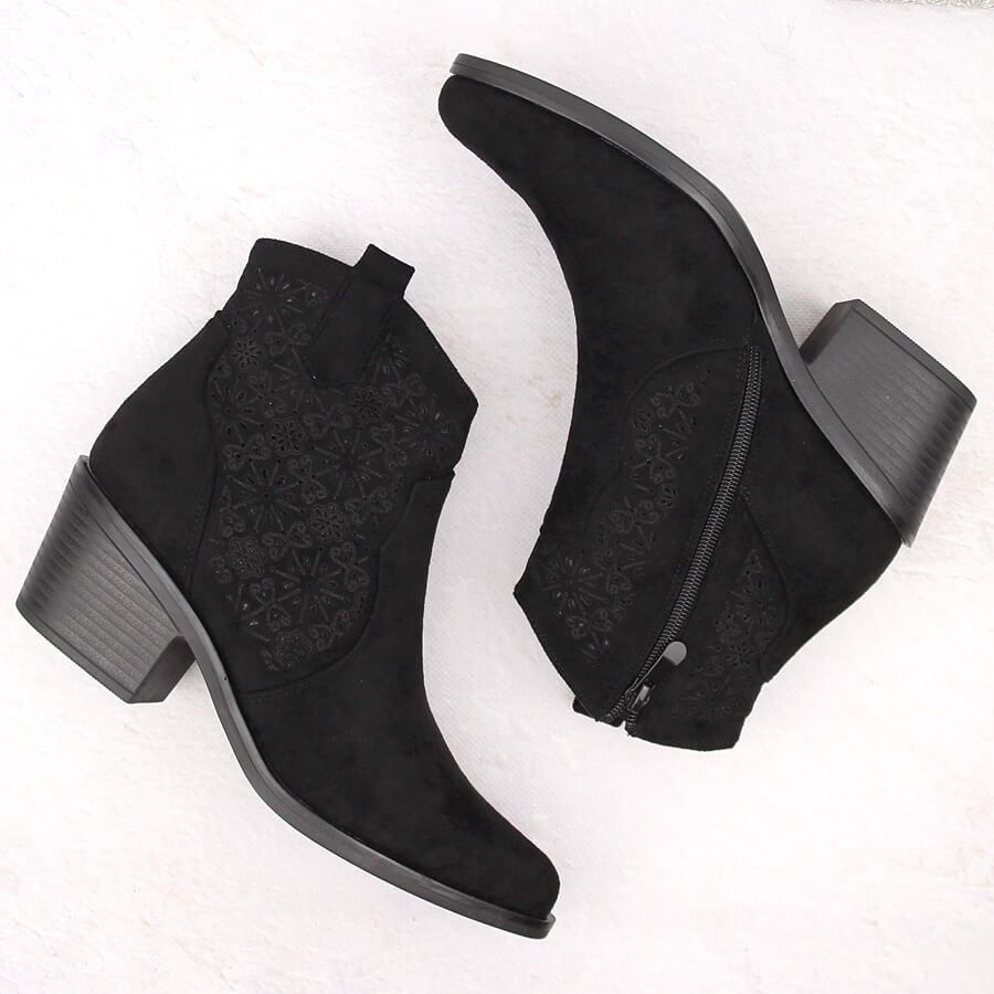 Women's Wildleder -Stiefel in schwarzen Openwork -Cowboy -Stiefeln der seriösen Marke S. Barski ist ein ideales Angebot für Frauen, die Mode, Stil und Komfort des Tragens schätzen. Sie bestehen aus ökologischem Leder mit hohem Qualitätsleder und bieten nicht nur einen eleganten Look, sondern auch eine Haltbarkeit. Das Knöchelobermaterial ist durch spektakuläre Ausschnitte und eine offene Dekoration gekennzeichnet, die ihnen einen einzigartigen Charakter verleiht.
