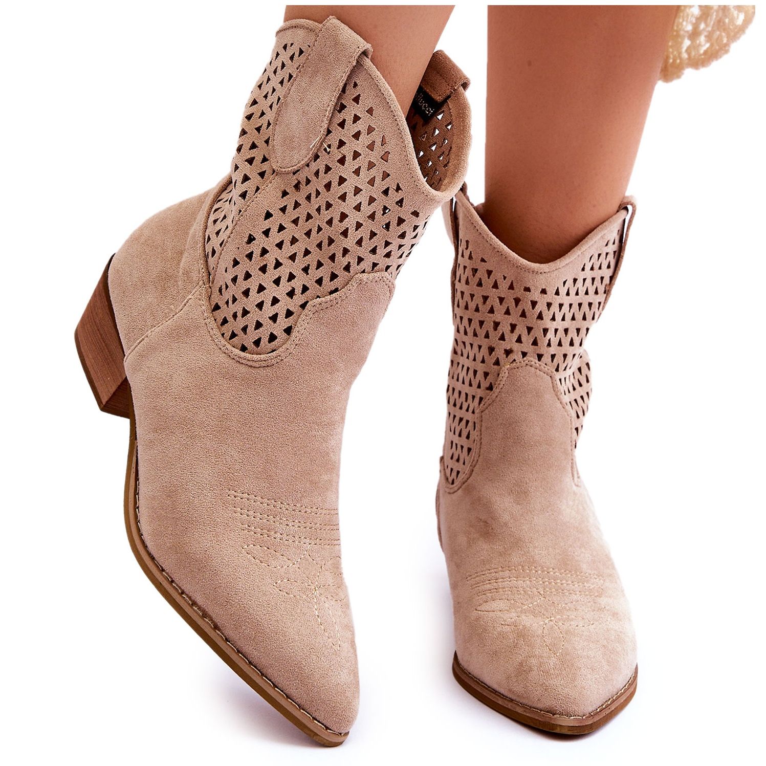 Details: Durchbrochene Cowboystiefel für Damen Beige Schilf