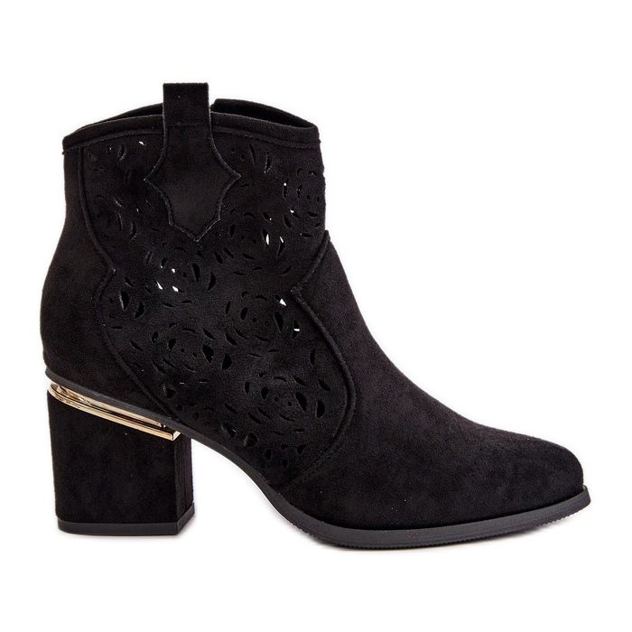 Openwork -Cowboy -Stiefel auf der Säule, die mit einem schwarzen Vosarara -Reißverschluss befestigt ist, ist die perfekte Wahl für Frauen, die sowohl Stil als auch Komfort schätzen. Diese niedrigen Stiefel wurden sorgfältig aus hochwertigem Öko -Wildleder hergestellt, wodurch die Haltbarkeit und das Tragen von Komfort garantiert werden. Das Openwork -Obermaterial verleiht ihnen Leichtigkeit und subtiler Charme, und ihre zeitlose schwarze Farbe lässt sie perfekt in verschiedene Stylisationen einfügen.