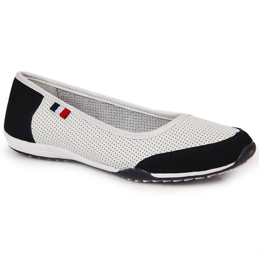 Elegante Openwork Filippo Ballerinas sind ein Vorschlag für Frauen, die Komfort und hohe Qualität schätzen. Die Oberseite und das Futter bestehen aus natürlichen Leder, und ein weicher Einsatz aus Wildleder -ökologischem Leder verleiht ein angenehmes Gefühl unter dem Fuß. Das Modell in einem gedämpften, weißen und navy -Stil eignet sich hervorragend für tägliche, Frühlings- und Sommerstilisationen.