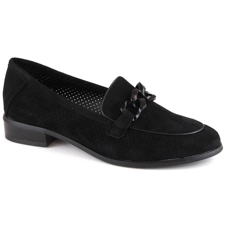 Die durchbrochenen Damen-Wildlederschuhe mit hohen Absätzen, schwarz Potocki SZ12052, sind ein ideales Angebot für Frauen, die jeden Tag Wert auf Eleganz und Komfort legen. Diese stilvollen Mokassins der renommierten Marke Potocki vereinen modernes Design mit hochwertiger Verarbeitung.