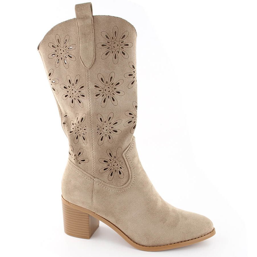 Jezzi Durchbrochene Damen-Wildlederstiefel, beige Jezzi RMR2337-11