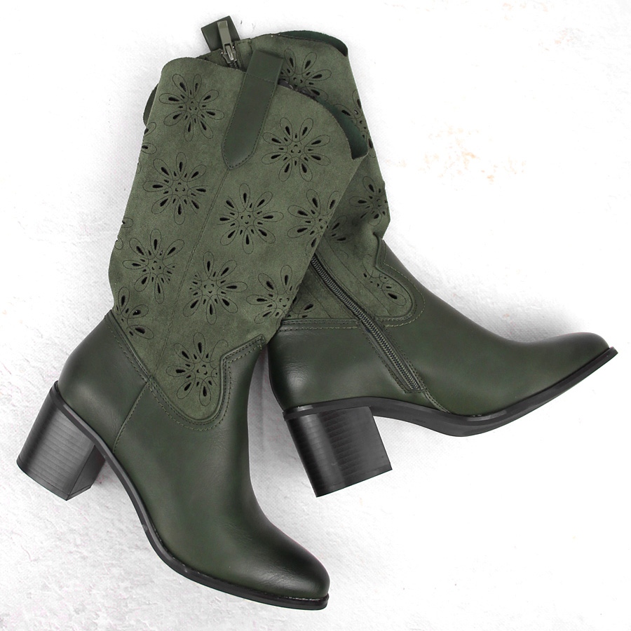 Details: Durchbrochene Damen-Wildlederstiefel, grün Jezzi RMR2337-11