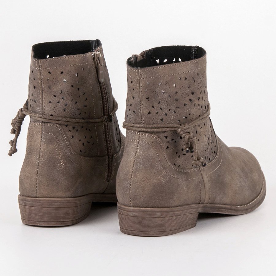 Ein charakteristisches Element dieser Stiefel ist das durchbrochene Obermaterial, das ihm Leichtigkeit und Originalität verleiht. Durch eine Kordel um den Knöchel können Sie das Schuhwerk individuell an Ihre Bedürfnisse anpassen, während der Reißverschluss auf der linken Seite ein einfaches An- und Ausziehen ermöglicht. Die Stiefel sind mit einem niedrigen, flachen Absatz von 3 cm Höhe ausgestattet, wodurch sie sehr angenehm zu tragen sind und sich perfekt für den täglichen Gebrauch eignen.