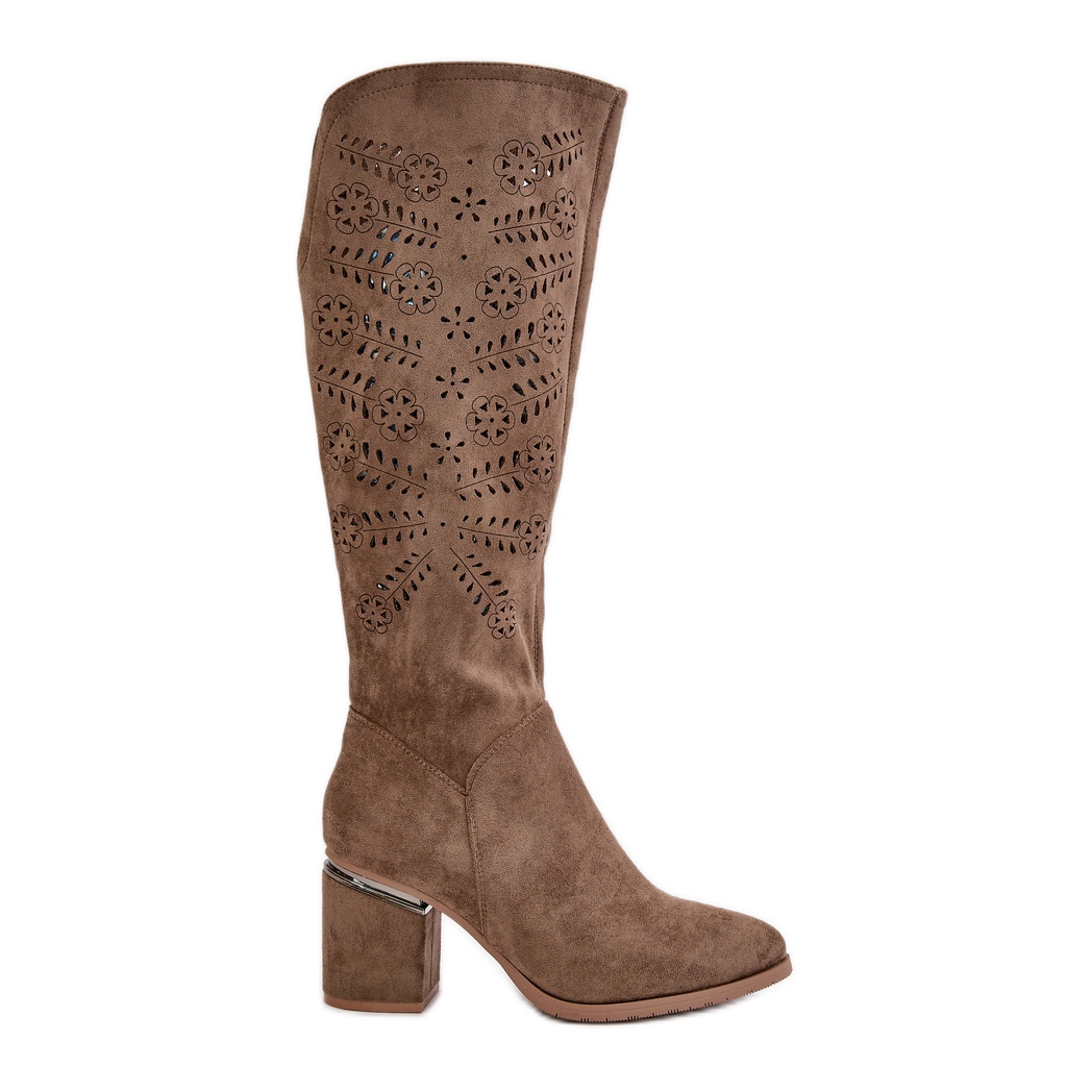 Vinceza Durchbrochene Damenstiefel mit hohem Absatz aus Öko-Wildleder Vinceza 16443 Dunkelbeige