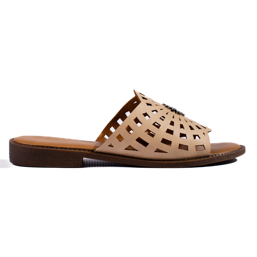 Entdecken Sie einzigartige Eleganz und Komfort dank der durchbrochenen Damenpantoffeln von W. Potocki in einem dunklen Beigeton. Diese stilvollen zehenstegsandalen sind die perfekte Wahl für jeden Anlass, insbesondere in den wärmeren Monaten Frühling und Sommer. Dank des Slip-On-Designs und der offenen Ferse sind sie einfach anzuziehen und den ganzen Tag über angenehm zu tragen.