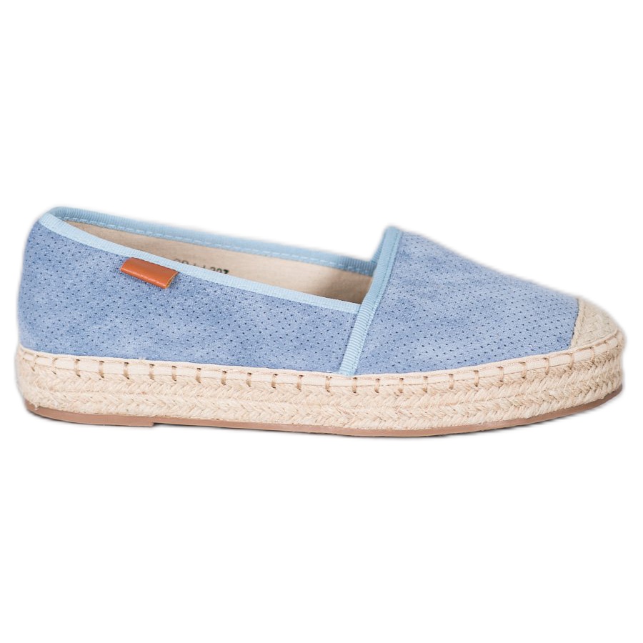 Das Modell zeichnet sich durch ein durchbrochenes Obermaterial aus, das nicht nur schön aussieht, sondern auch für eine ausreichende Belüftung der Füße sorgt, was an wärmeren Tagen äußerst wichtig ist. Die aus ökologischem Wildleder gefertigten Espadrilles sind weich und angenehm zu tragen und ihr Komfort wird durch eine integrierte, weiche Fersenkappe erhöht.