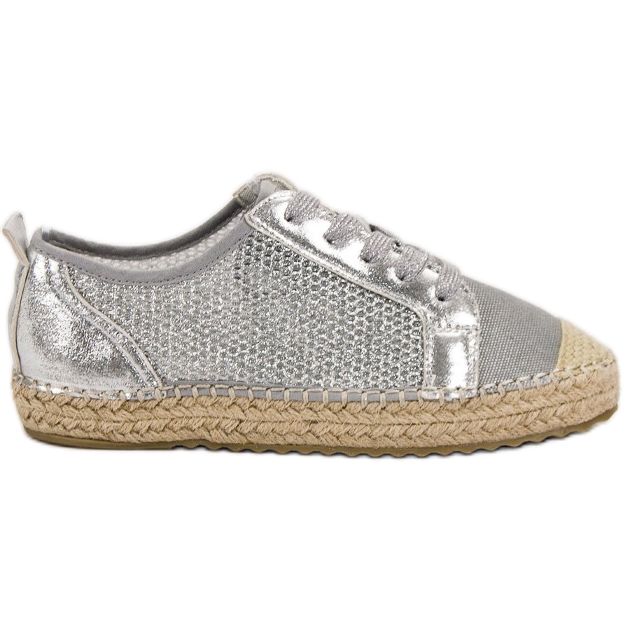 Espadrilles sind aus hochwertigem Stoff in Silbertönen gefertigt, was sie zu einem vielseitigen Kleidungsstück macht. Kontrastierende Spitzen und Sohlen, besetzt mit geflochtener Kordel, verleihen ihnen einen einzigartigen Charakter. Dieses Modell passt sowohl zu alltäglichen als auch zu sportlichen Styles perfekt.