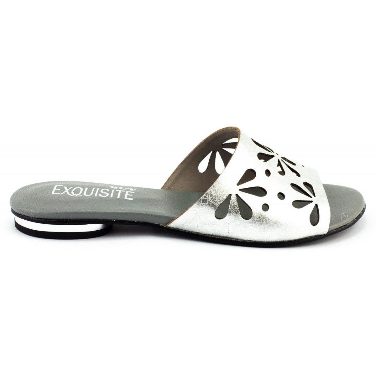 Elegante und subtile Ex -1072 zehenstegsandalen in einem metallischen, Silver Shade ist ein Vorschlag für Frauen, die Stil und Komfort schätzen. Das obere obere obere aus natürliche Leder sorgt für eine großartige Luftzirkulation, dank der die Sandalen besonders an wärmeren Tagen funktionieren werden. Der weiche Einsatz aus natürlichen Leder und eine niedrige, flache Ferse mit einer Höhe von 1,5 cm garantiert den ganzen Tag über den bequemen Gebrauch.