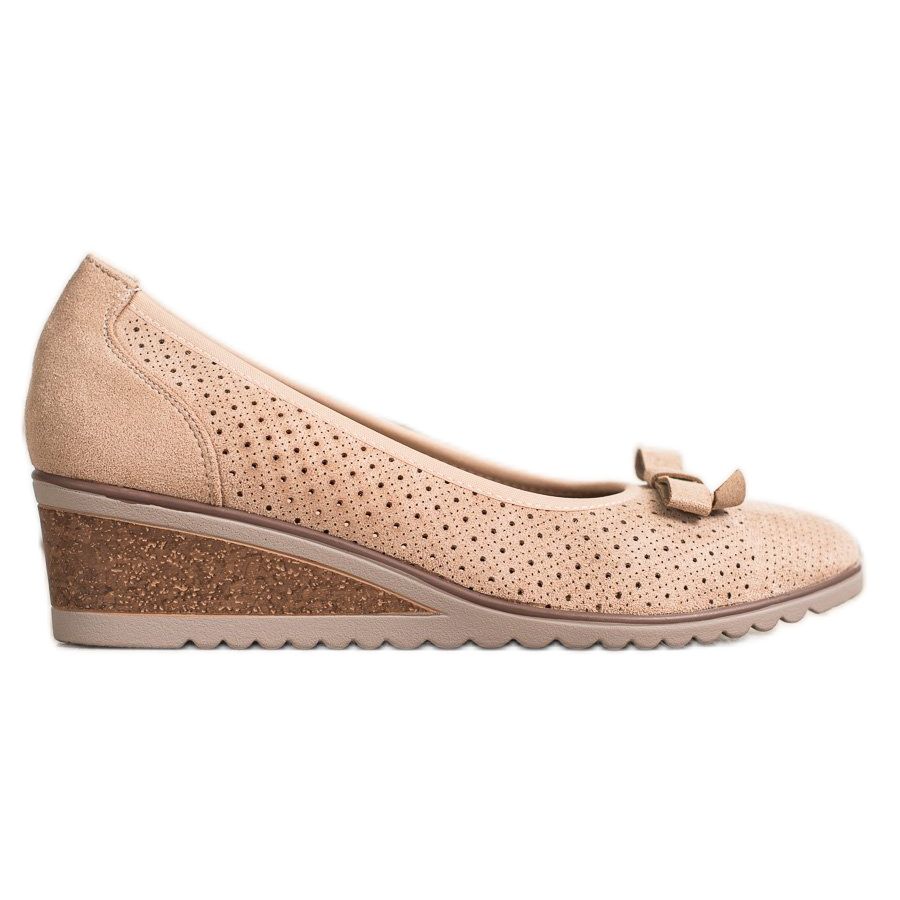 Bereichern Sie Ihre Frühlings-Sommer-Garderobe mit stilvollen, durchbrochenen Keilpumps der Marke Vinceza. Diese eleganten Schuhe passen nicht nur perfekt zu den neuesten Trends, sondern sorgen dank der Verwendung hochwertiger Materialien auch für Tragekomfort. Sie bestehen aus ökologischem Wildleder und zeichnen sich durch ein hellbraunes Obermaterial aus, das mit einem einzigartigen durchbrochenen Muster verziert ist, das Leichtigkeit und Frische verleiht.
