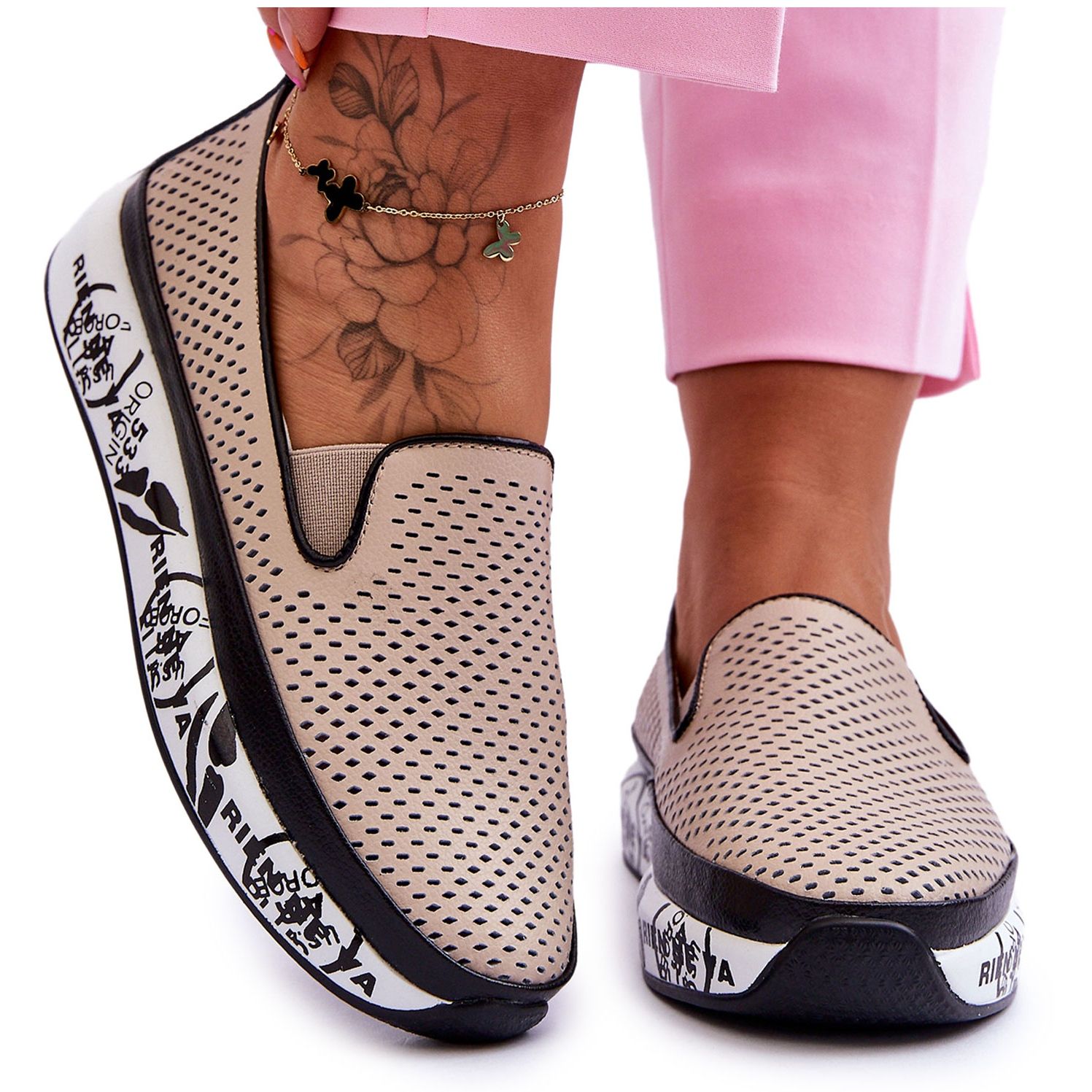 S.Barski S.Barski Durchbrochene Ledersneaker für Damen Slip-On Beige Sorito