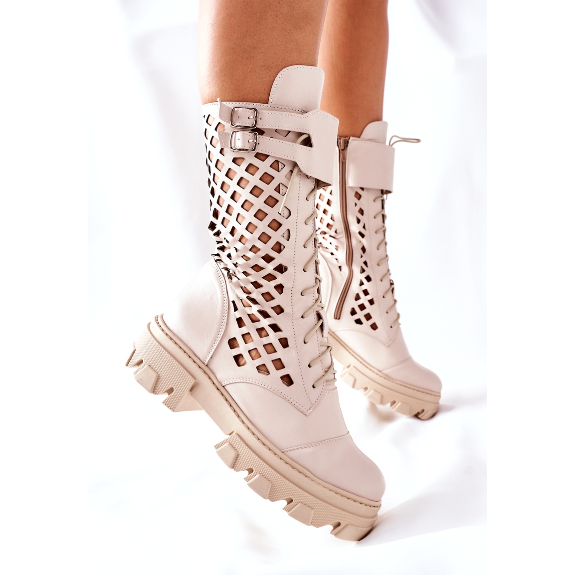 Details: PA2 Durchbrochene Lederstiefel für Damen Trappers Beige Hootie