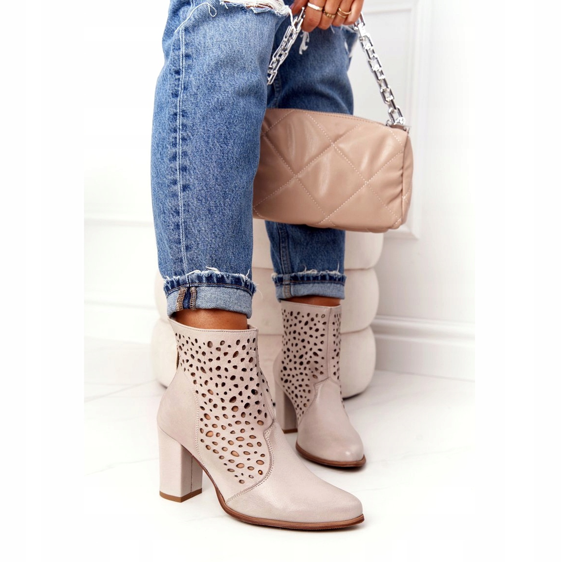 Details: Durchbrochene Lederstiefeletten auf einem Post Exquisite 1219 Cappuccino beige