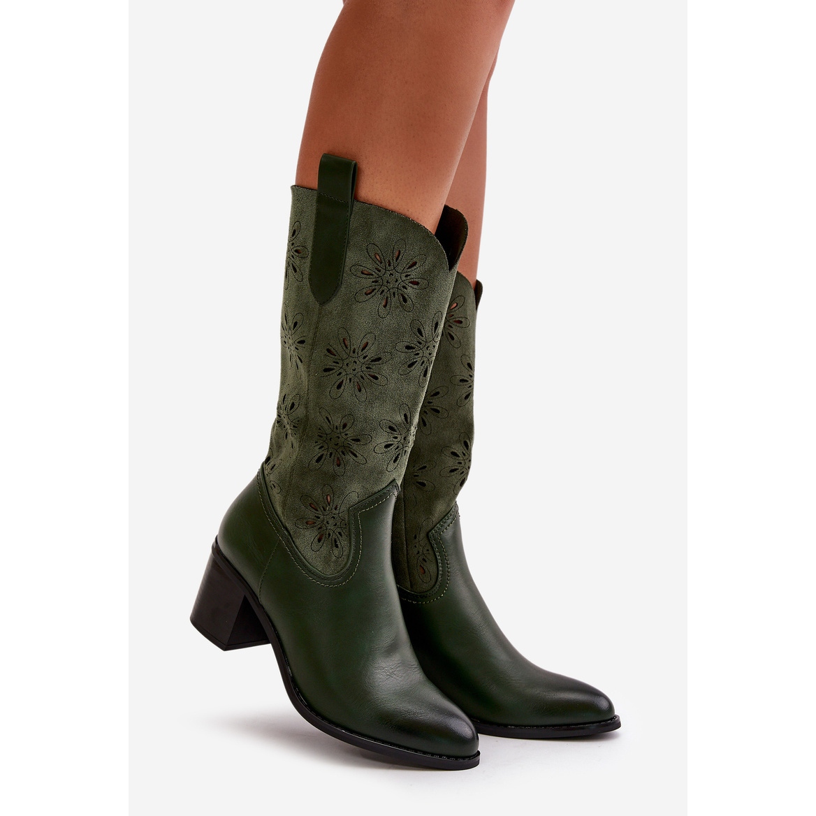 Jezzi Jezzi Durchbrochene mittelhohe Damenstiefel aus Öko-Wildleder in Grün von Nevilos