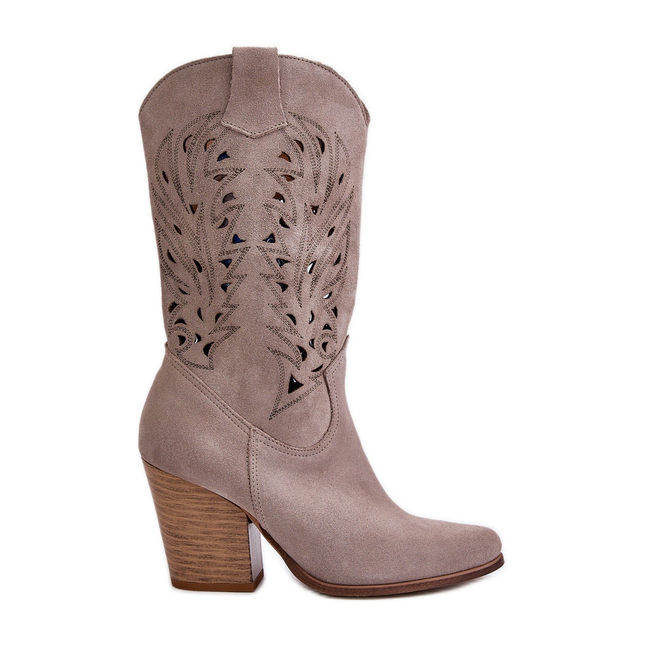Details: Durchbrochene mittelhohe Stiefel mit hohem Absatz aus Wildleder Lewski 3609 Cappucino beige