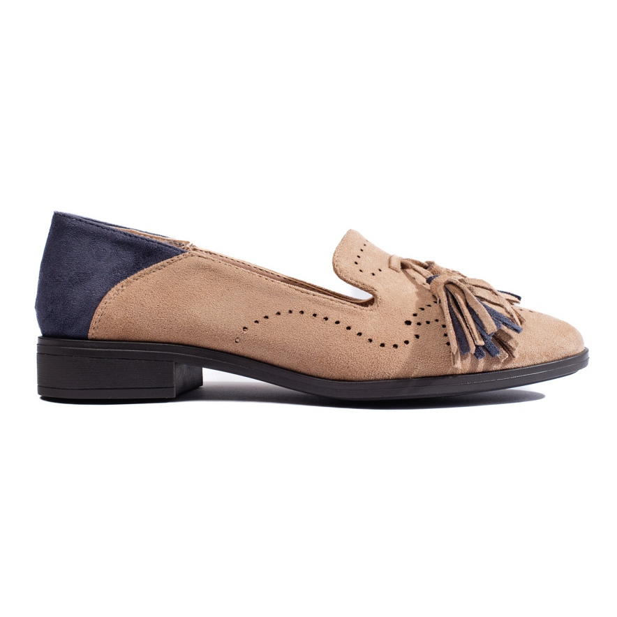 Die beige Farbe dieser Mokassins ist ein Klassiker, der problemlos in fast jeden Stil passt. Sie sind eine ideale Wahl für Jeans, formellere Hosen und sogar Sommerkleider. Das Außenmaterial, also ökologisches Wildleder, verleiht dem Produkt nicht nur ästhetischen Charme, sondern schont auch die Umwelt. Die Innensohle aus Naturleder garantiert Komfort für Ihre Füße auch bei ganztägigem Gebrauch.