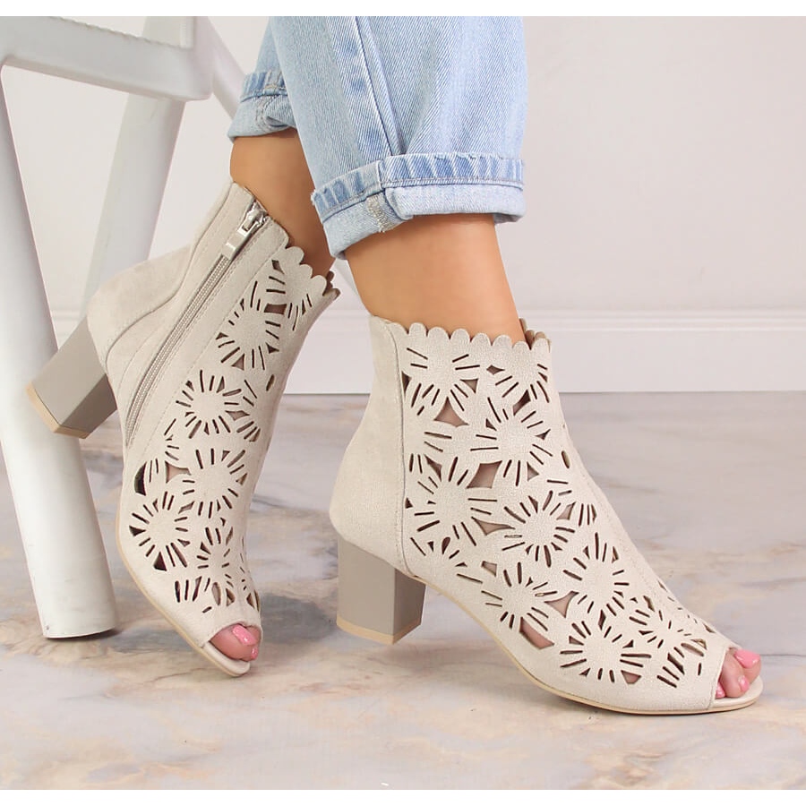 Details: M. DASZYŃSKI Durchbrochene Peeptoe-Stiefel für Damen im Frühjahr beige M.Daszyński MR1954-10
