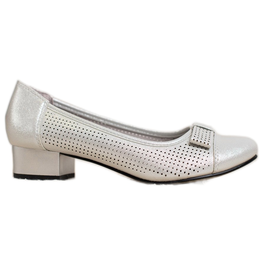 Dieses Modell zeichnet sich durch einen aufgebauten, weichen Absatz und eine glatte, synthetische Sohle aus, die guten Halt garantiert. Durch die runde Spitze können sich die Finger frei bewegen, was den Tragekomfort erhöht. Graue Schuhe sind universell und passen perfekt zu einer Vielzahl von Stilen, von lässig bis elegant.
