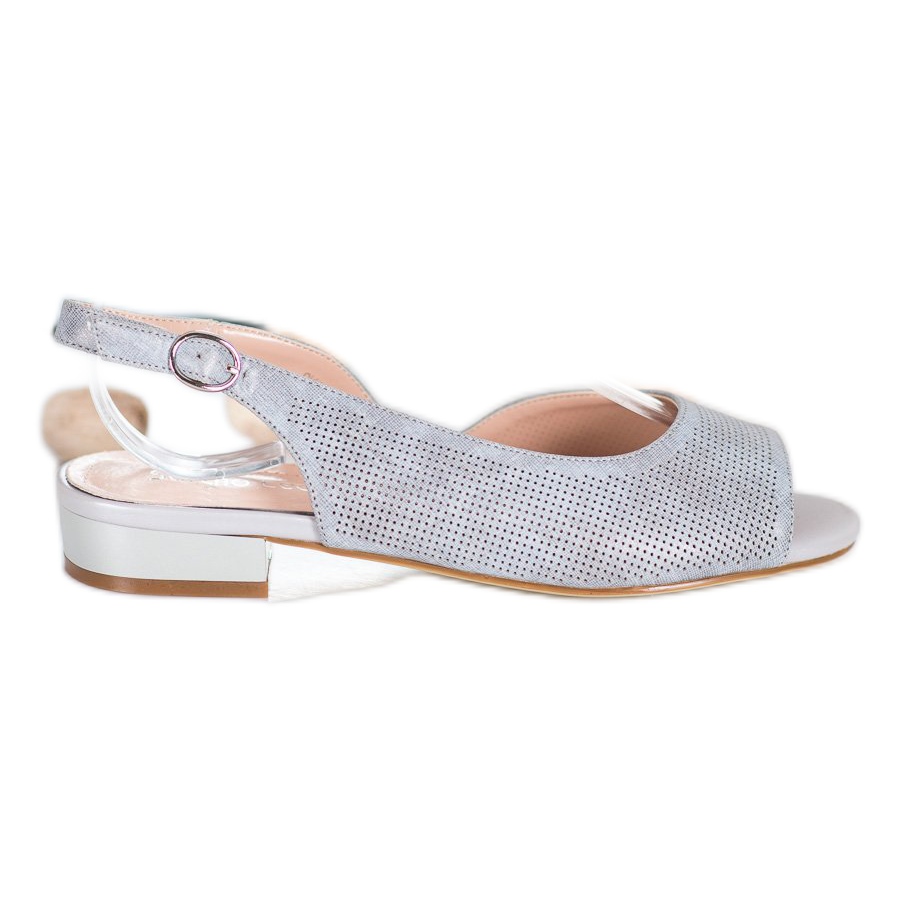 Wir präsentieren graue Damensandalen von Sergio Leone, die Eleganz mit Komfort verbinden. Das durchbrochene Obermaterial verleiht ihnen nicht nur einen einzigartigen Charakter, sondern sorgt auch für eine hervorragende Atmungsaktivität, was sie zu einer idealen Wahl für heiße Tage macht. Ein praktischer Schnallenverschluss und ein 2,5 Zentimeter flacher Absatz verleihen Klasse und erleichtern gleichzeitig den Alltag.