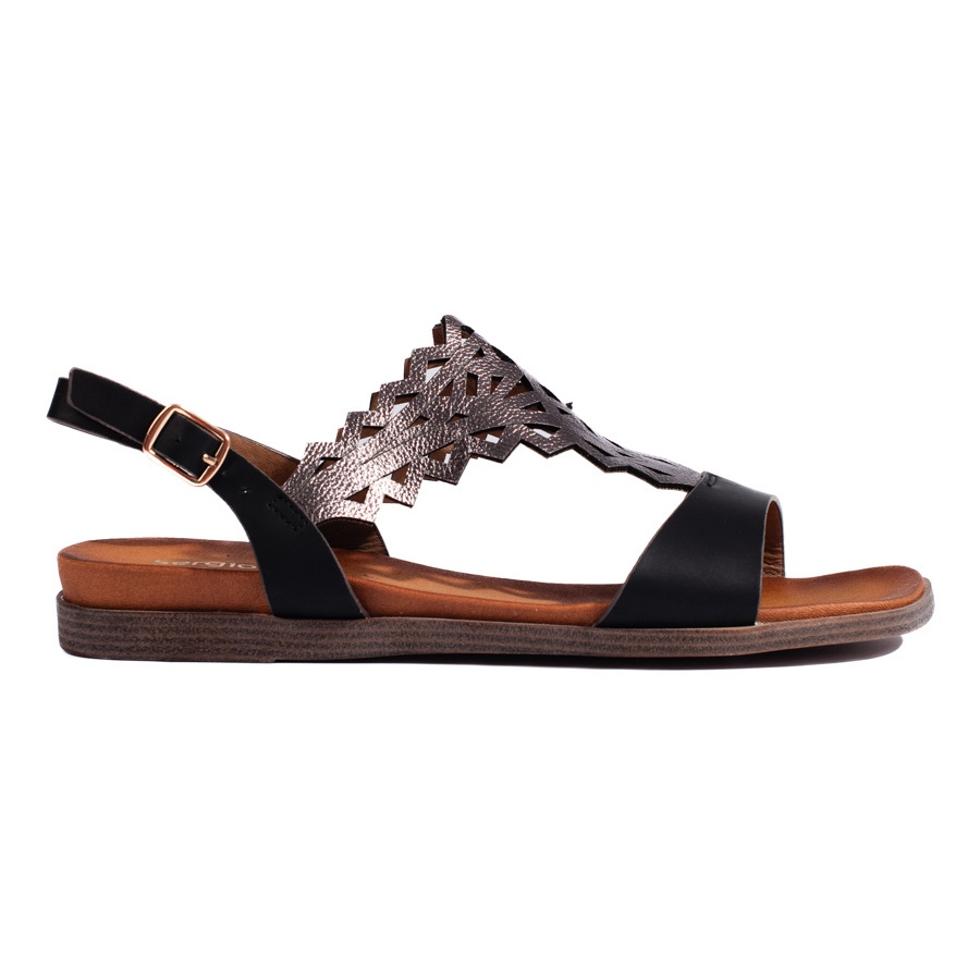 Details: Durchbrochene schwarze Damensandalen von Sergio Leone