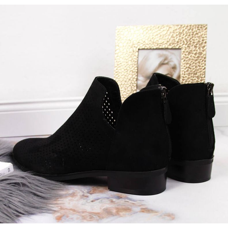 Details: Durchbrochene schwarze Wildlederstiefel für Damen W Vinceza