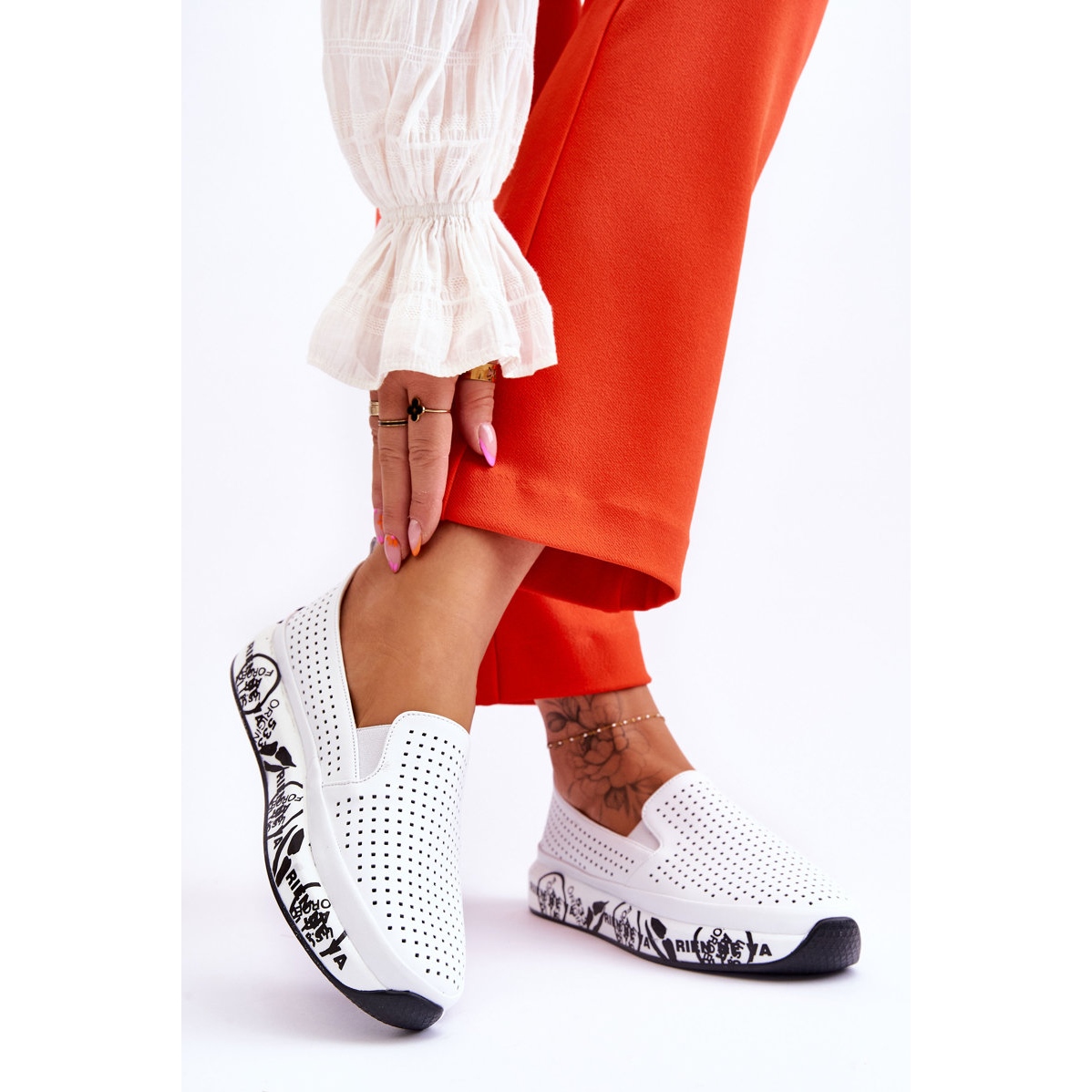 Details: S.Barski Durchbrochene Slip-On-Sneakers aus Leder Weiß Gedra