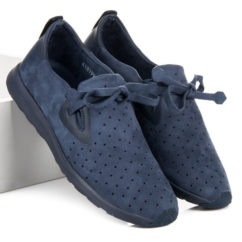 Wir präsentieren sensationelle durchbrochene Slipper aus Wildleder in Blau, kreiert von der Marke Kylie. Dies ist ein perfektes Angebot für Frauen, die Wert auf Komfort und modisches Aussehen legen. Die Schuhe bestehen aus hochwertigem ökologischem Material, was sie umweltfreundlich und äußerst stilvoll macht.