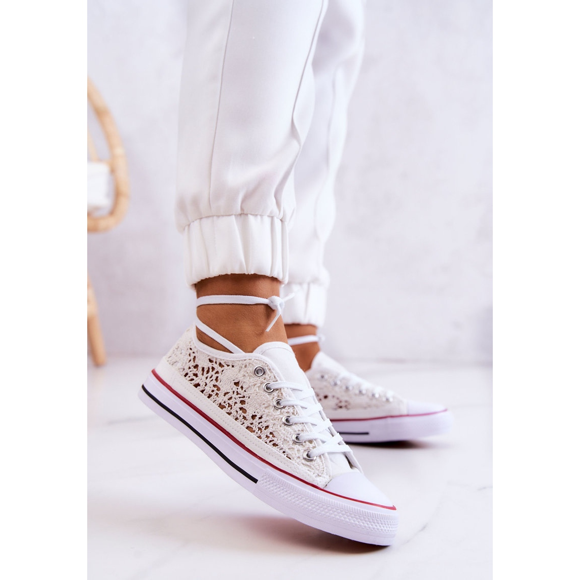 Damengefüge Openwork -Sneaker - Weißes Unternehmen