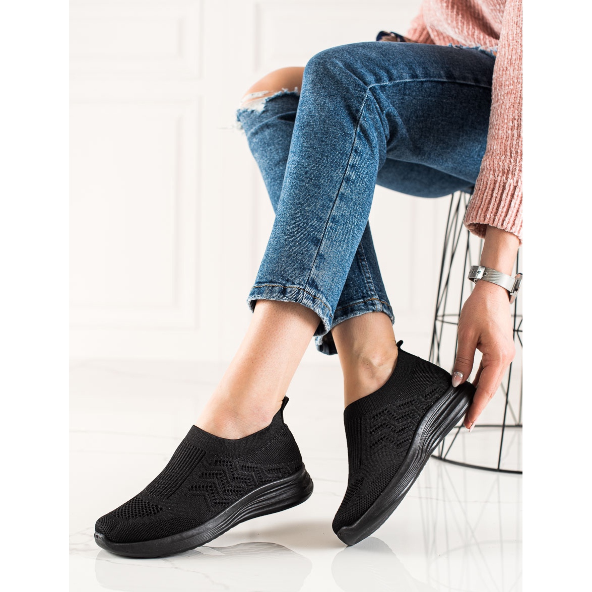 Dies sind elegante und bequeme Slip-On-Sportschuhe mit Lochmuster von Renda, die perfekt für die Frühlings-/Sommersaison sind. Diese schwarzen Damen-Sportschuhe vereinen lässigen Stil mit Funktionalität und sind somit eine tolle Wahl für den Alltag.