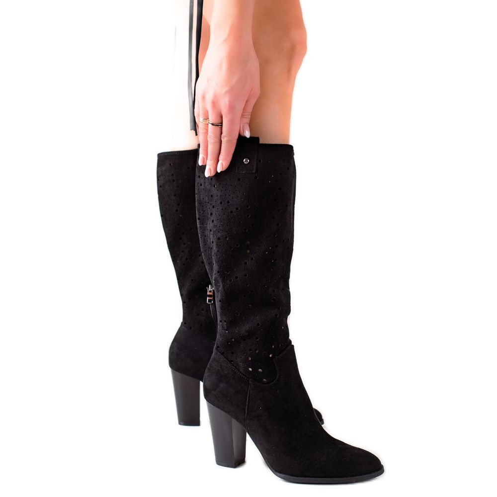 Details: TRENDI Durchbrochene Stiefel auf einem Pfosten schwarz