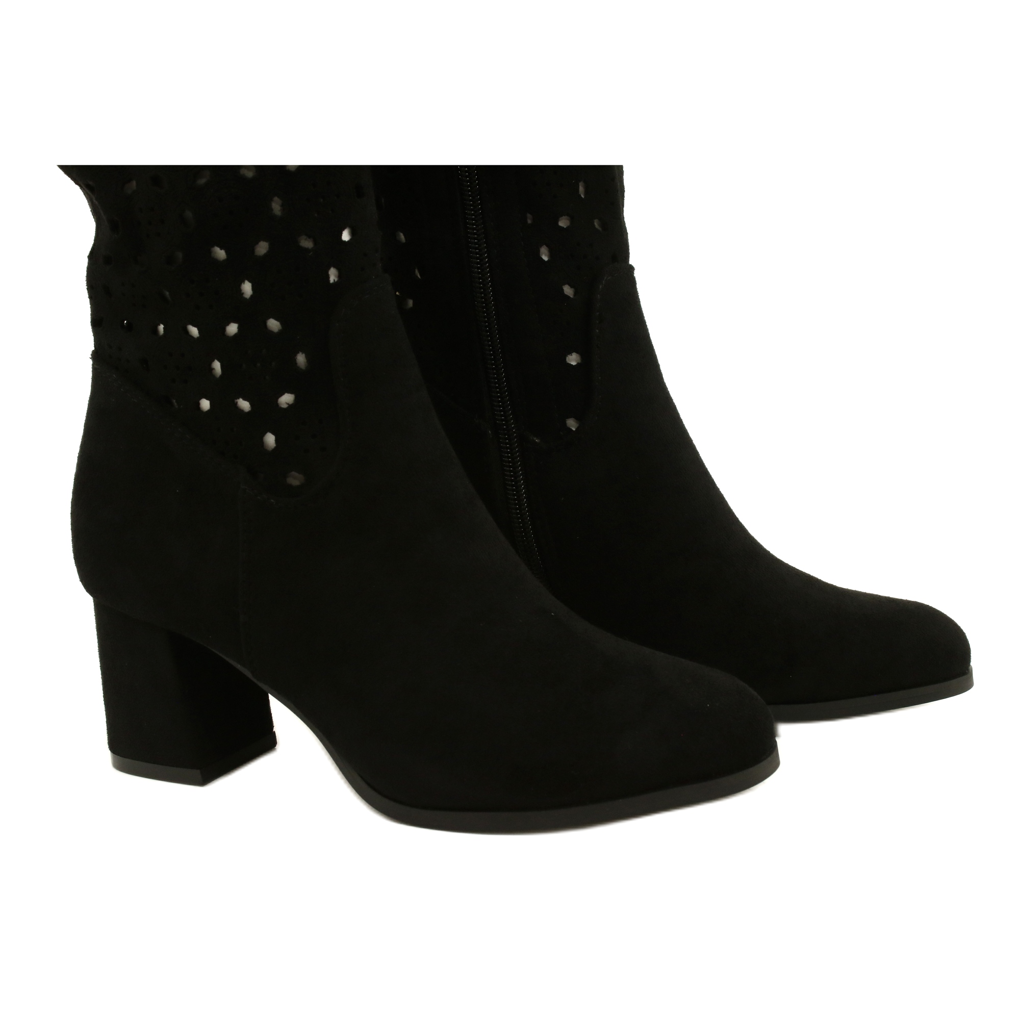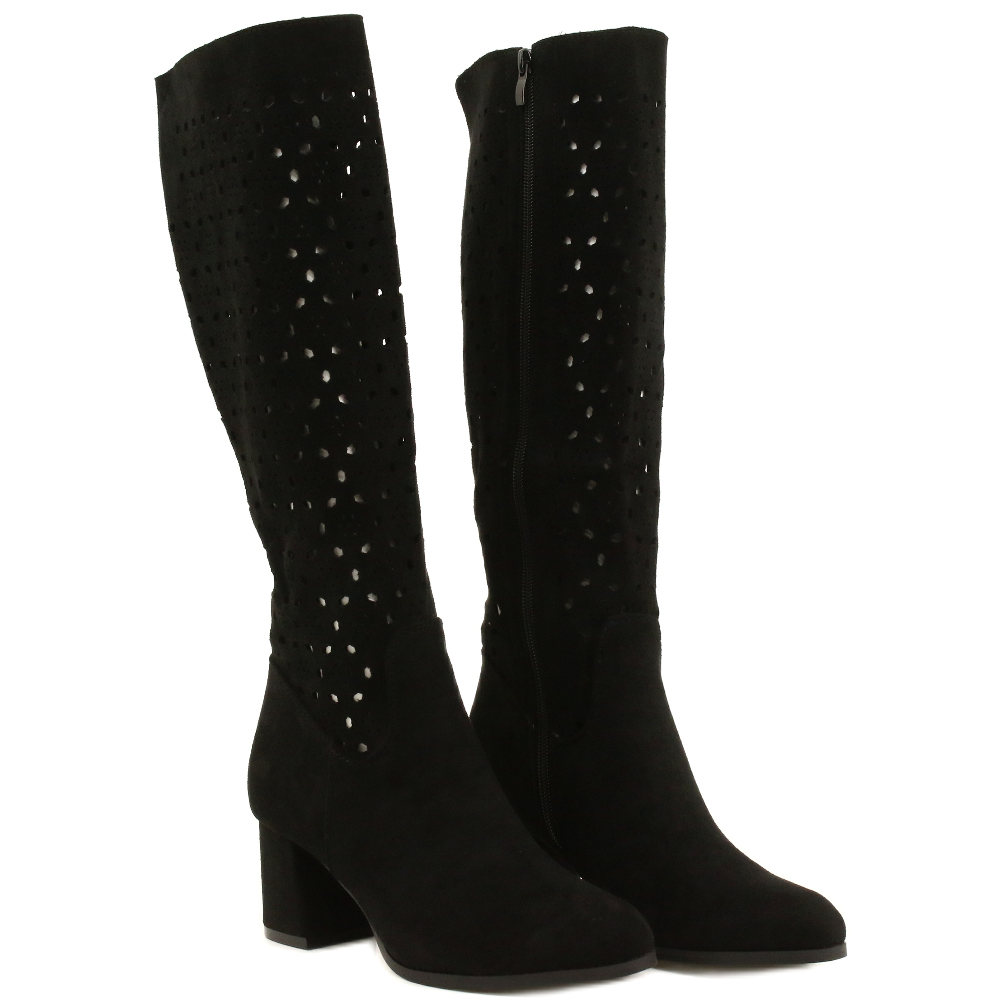 Entdecken Sie Eleganz und Komfort mit durchbrochenen Stiefeln mit hohen Absätzen der Marke M.Daszyński – Modell SA156-10 in klassischem Schwarz. Diese wunderschönen Stiefel sind perfekt für die Frühlings- und Herbstsaison und kombinieren modernes Design mit Funktionalität.