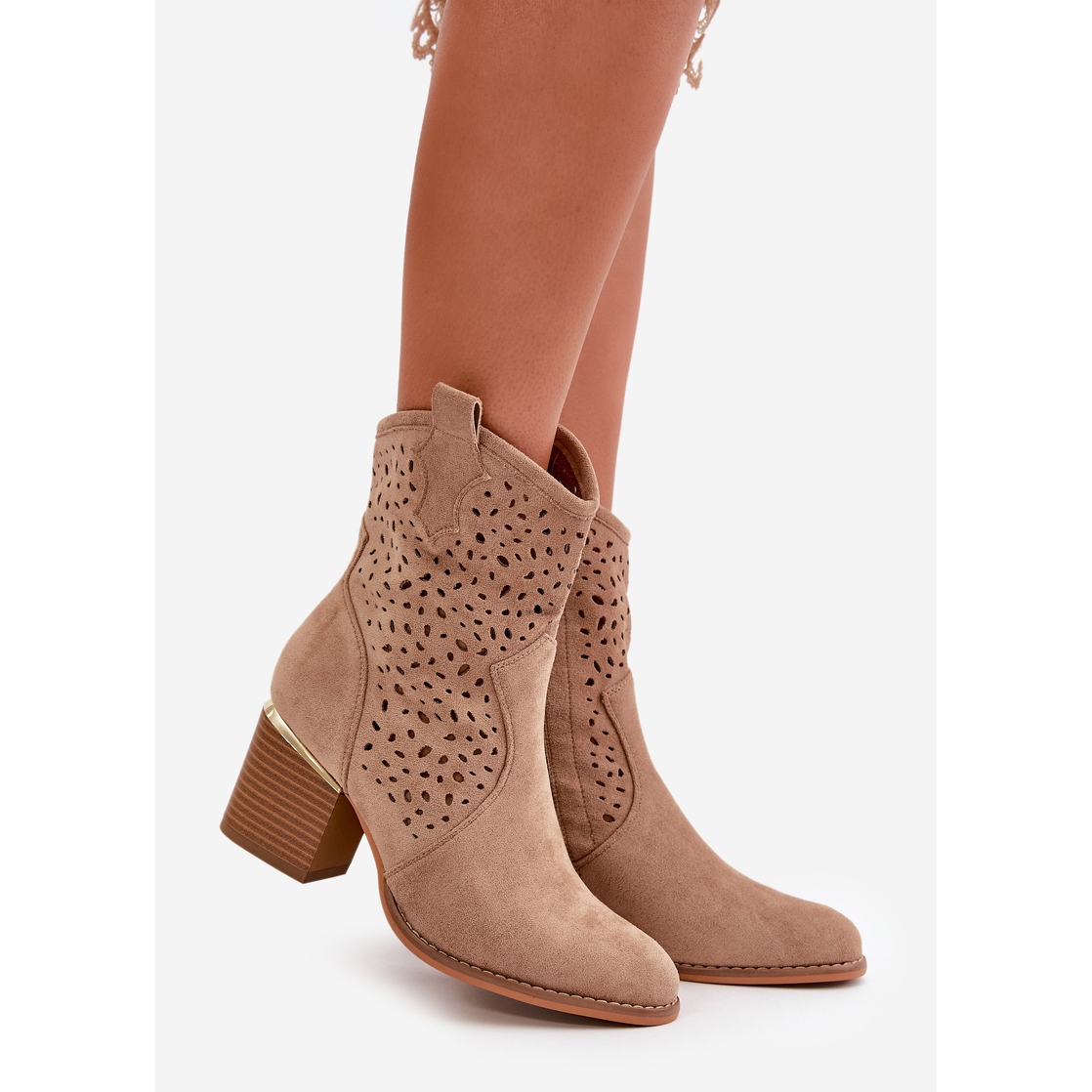 Inna marka Durchbrochene Stiefeletten aus Öko-Wildleder, mit Reißverschluss befestigt, dunkelbeige Sevana