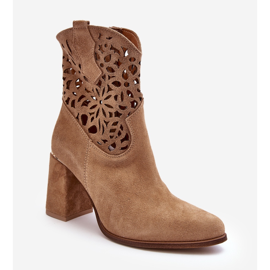 Lewski Shoes Lewski Shoes Durchbrochene Stiefeletten aus Wildleder Leewski Schuhe 3264 Dunkelbeige braun