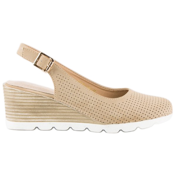 Das Innere der Pumps ist mit Naturleder ausgekleidet, was jeden Schritt angenehm und bequem macht. Das durchbrochene Design sorgt für Leichtigkeit und Eleganz und die runde Nase sorgt für Tragekomfort, auch bei längerem Tragen. Ein zusätzlicher Vorteil ist der 6,5 cm hohe Keilabsatz, der die Figur perfekt formt, ohne auf Komfort zu verzichten.