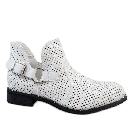 Entdecken Sie einen einzigartigen Stil mit den weißen, durchbrochenen Stiefeletten 168-165! Diese Damenstiefeletten in intensivem Weiß sind die perfekte Wahl für Sommertage und vereinen Eleganz mit Komfort. Mit massiven Silberschnallen verziert, ziehen sie die Blicke auf sich und verleihen jedem Styling Charakter.