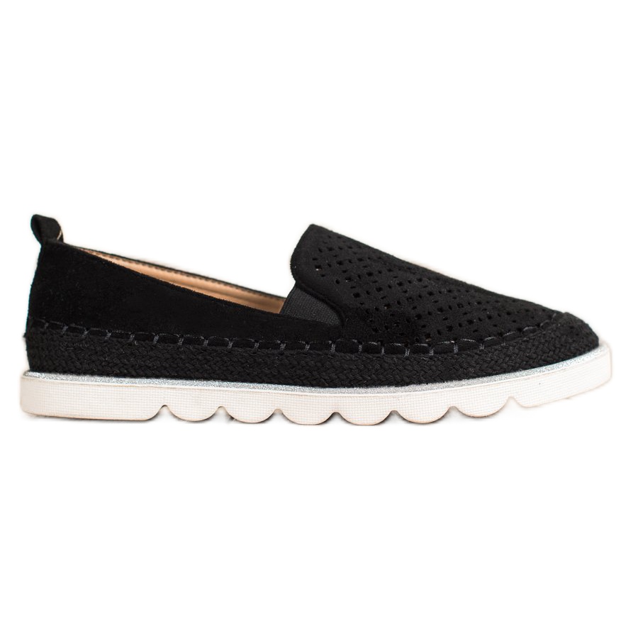 Details: SHELOVET Durchbrochene Wildleder-Slipper schwarz