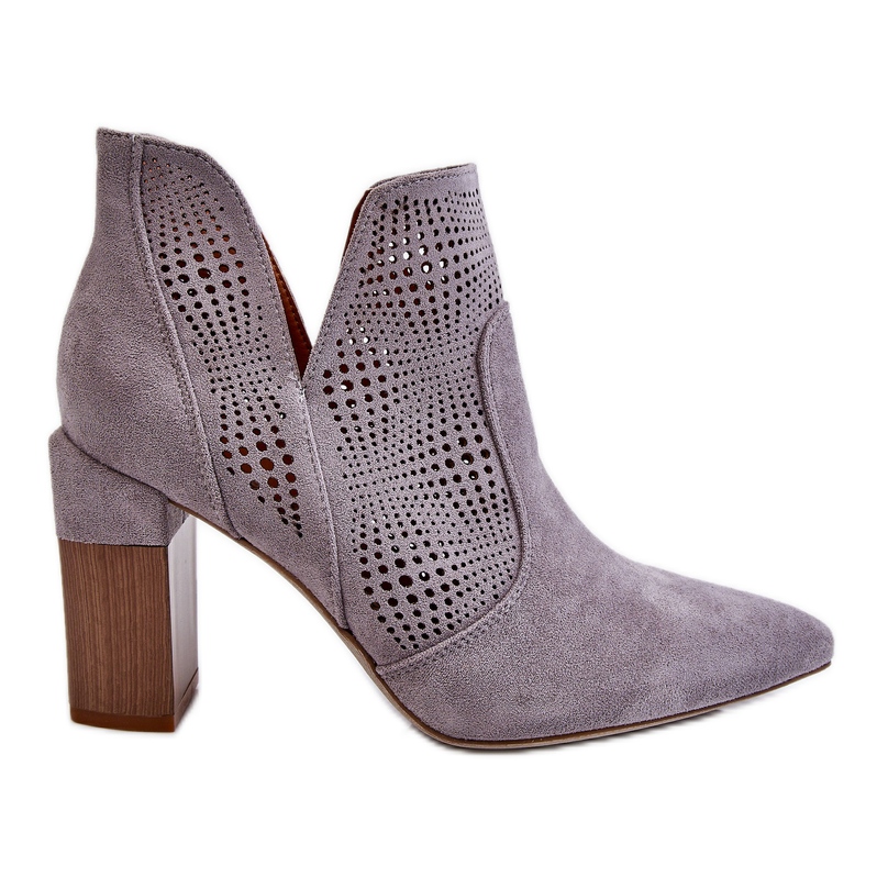 **PM1 durchbrochene Wildleder-Stiefeletten mit hohem Absatz, Leanna, Grau**