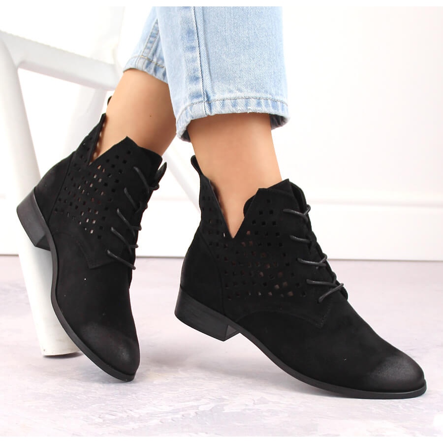 Details: Durchbrochene Wildleder-Stiefeletten mit flachem Absatz, schwarz Potocki SZ12089