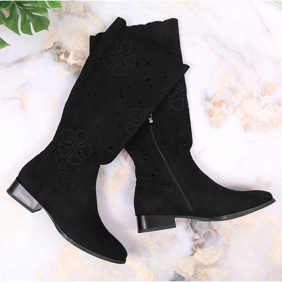 M. DASZYŃSKI M. DASZYŃSKI Durchbrochene Wildlederstiefel für Damen Daszyński schwarz