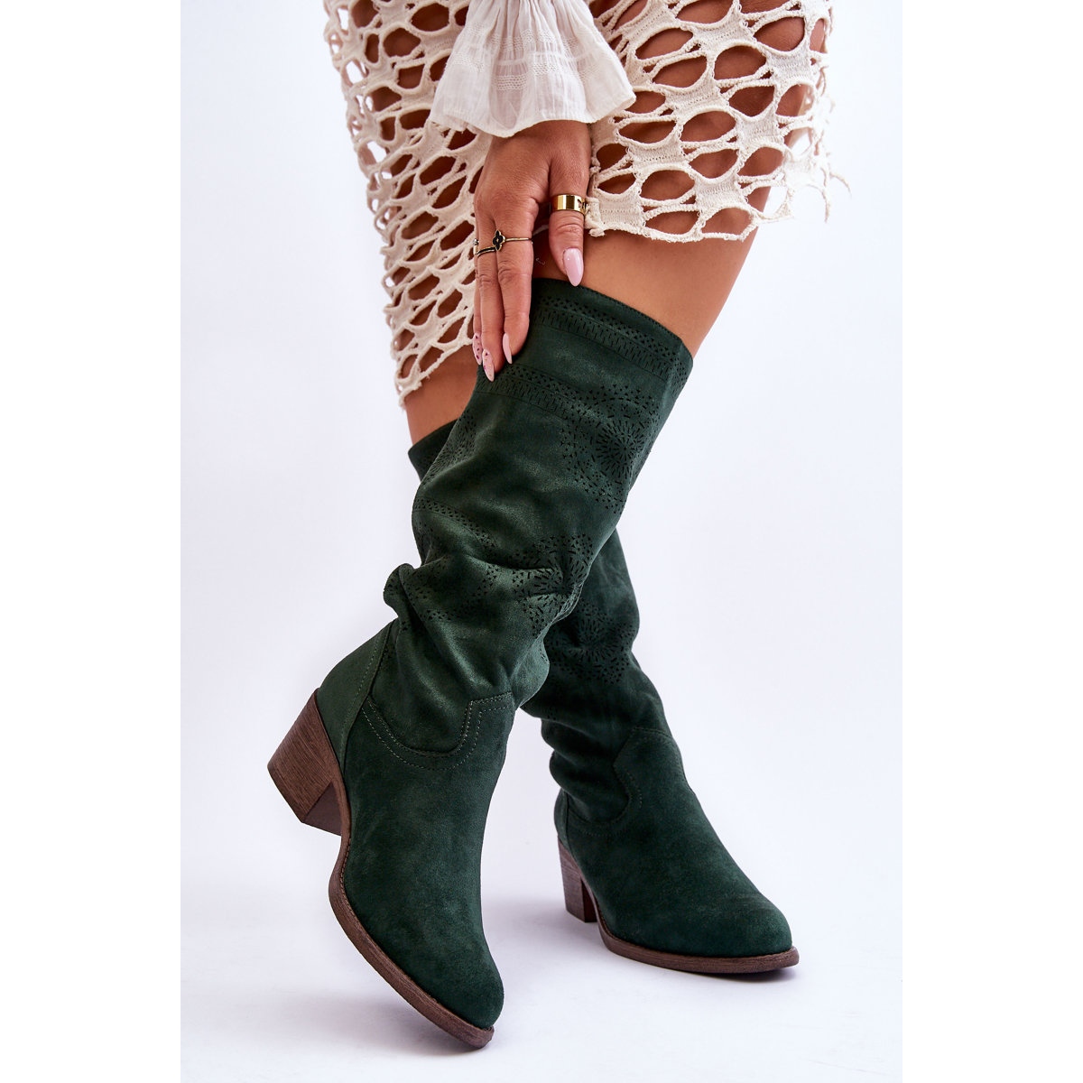 Inna marka Durchbrochene Wildlederstiefel für Damen Grün Enriss