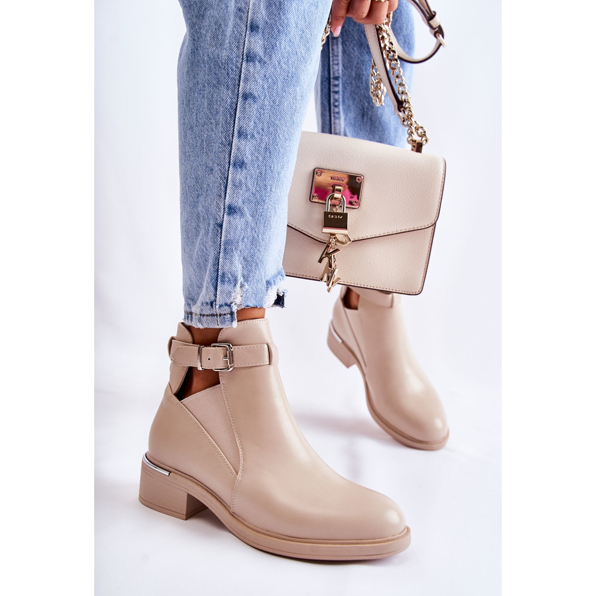 Der 4 cm hohe flache Absatz macht sie nicht nur bequem, sondern auch stilvoll. Die versteifte Fersenkappe und die Innensohle aus Stoff sorgen für Strapazierfähigkeit und Stabilität, während der Schnallenverschluss und der Druckknopfriemen zusätzliche Styling-Optionen bieten. Dank ihrer neutralen Farben passen diese beigen Stiefeletten in jede Garderobe und lassen sich perfekt mit einer Vielzahl von Outfits kombinieren – von alltäglichen bis zu eleganteren.