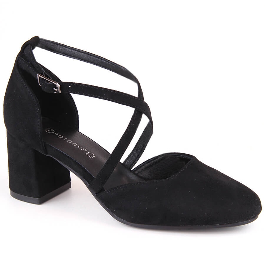 Elegante Damen-Wildledersandalen mit hohem Absatz, schwarz Potocki SZ12341, sind die perfekte Wahl für jede Frau, die Wert auf Stil und Komfort legt. Diese eleganten Sandalen aus ökologischem Wildleder in klassischem Schwarz eignen sich perfekt für viele Stile, sowohl im Alltag als auch für besondere Anlässe.