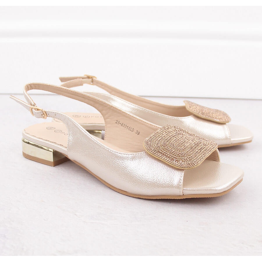 Elegante Frauensandalen mit Strasssteinen der renommierten Potocki -Marke sind die perfekte Wahl für Frauen, die Stil und Komfort schätzen. In perfekter goldener Farbe verleihen diese Sandalen sowohl täglich als auch für besondere Anlässe den Glanz jedes Stylings.